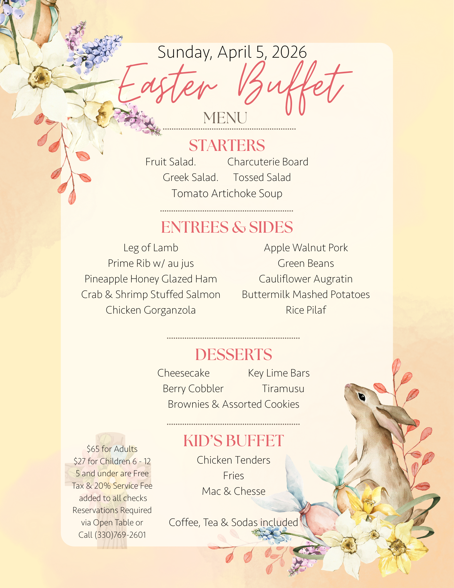 Seasonal fare with classic favorites all made fresh and to perfection for your enjoyment